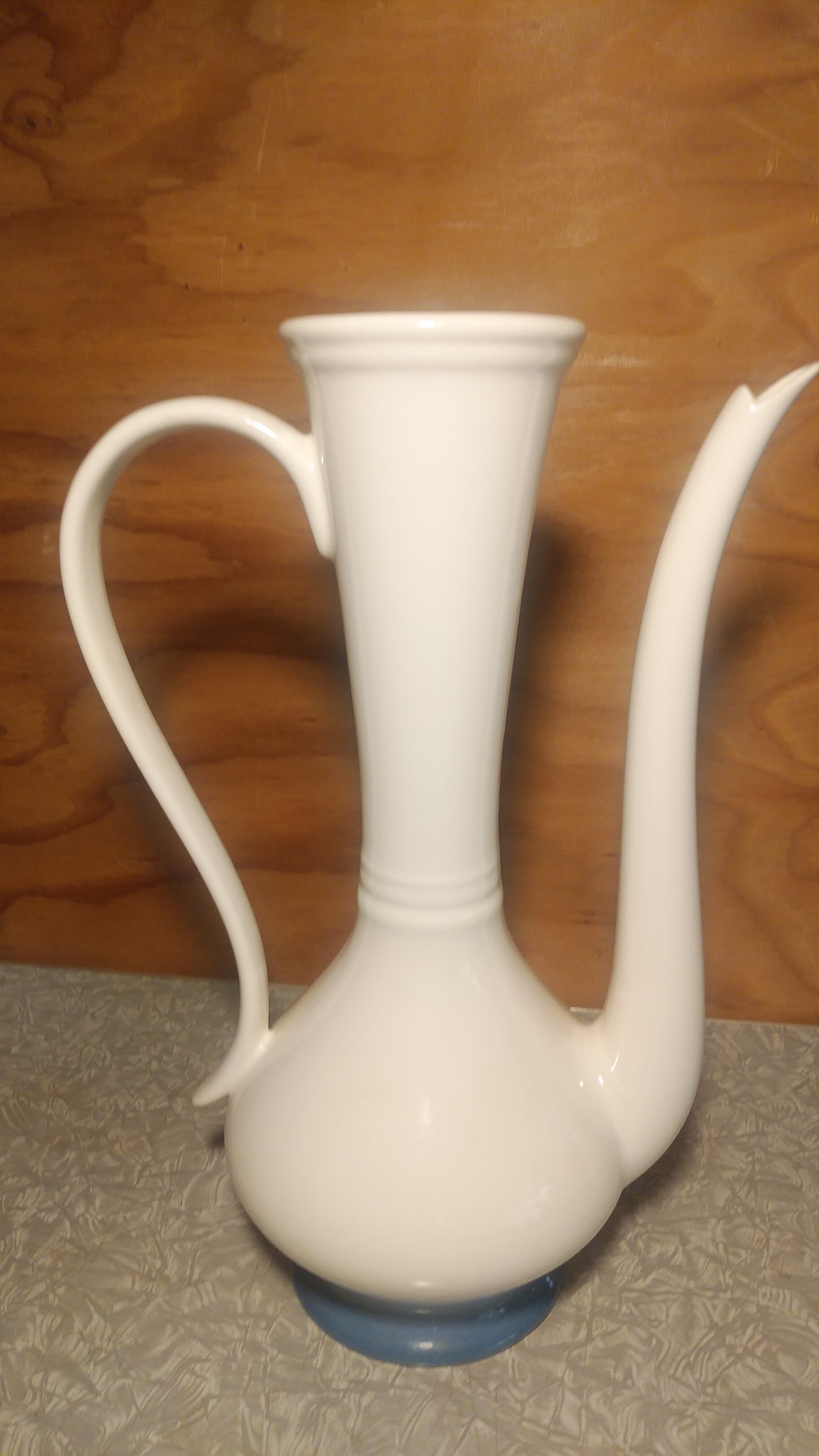(約)W17cm×D13cm×H35cm 。 イソップ寓話の「狐と鶴のご馳走」に出てきそうな、 細長い水差し。 ハンドペイントの花模様入り。